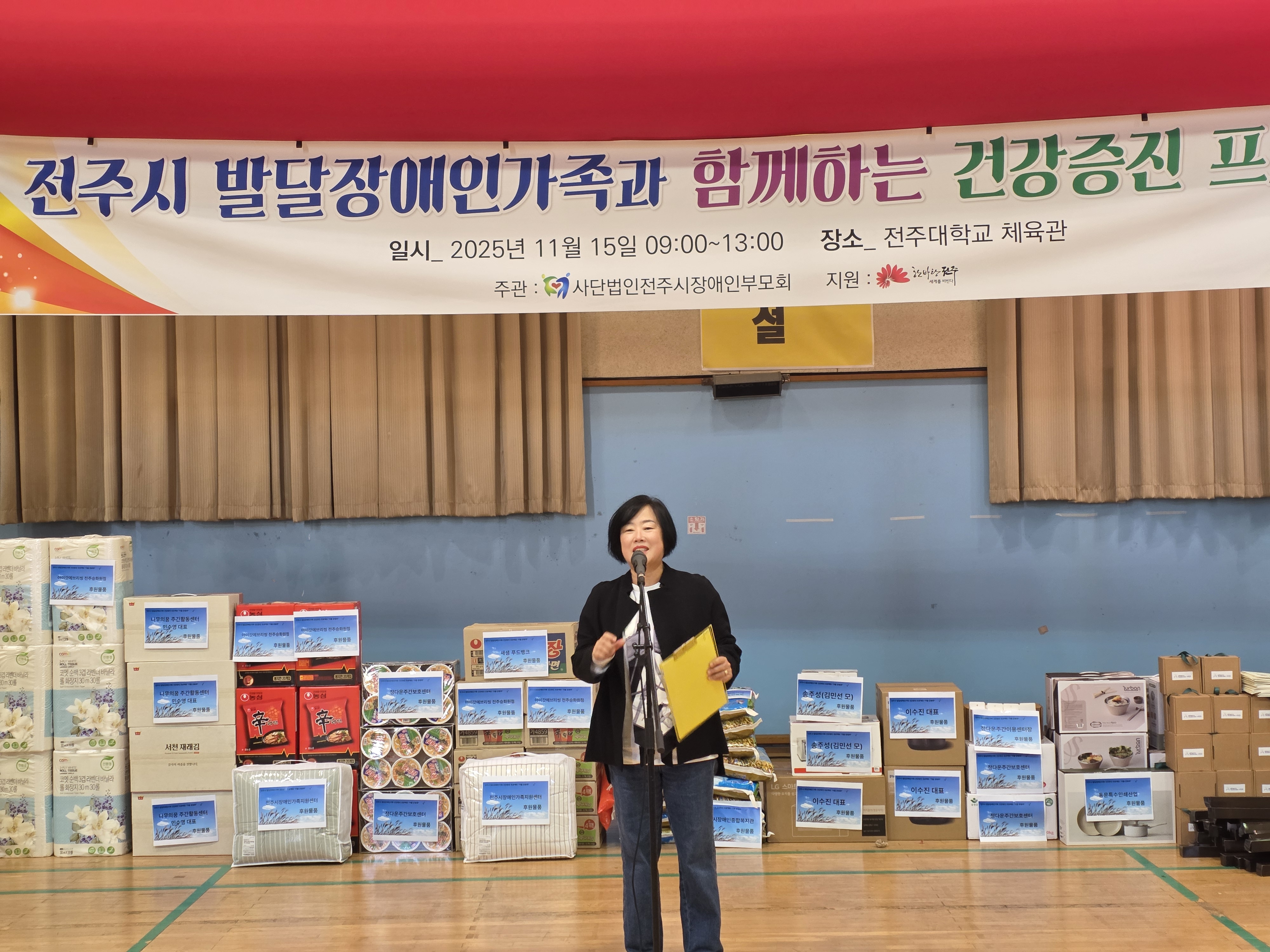 2025년 전주시발달장애인가족과 함께하는 건강증진프로젝트 가을운동회 일시: 2025년 11월 15일(토), 09:00~13:00 장소: 전주대학교 체육관 참석인원 : 185명 사단법인전주시장애인부모회의 모든 가족들이 모여 신나고 즐거운 가을운동회를 가졌습니다. 많은 내빈들께서 참가하셔서 자리를 빛내주셨습니다. 법인가족들이 모두 한자리에 모여 운동회도 하고 식사도 하면서 하나됨을 확인하는 뜻깊은 자리였습니다.